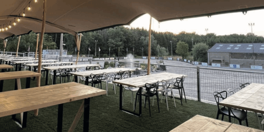 Votre table BUSINESS (6 à 8 personnes) sur la terrasse qui domine le concours. Profitez de cet espace privatif avec vos invités.